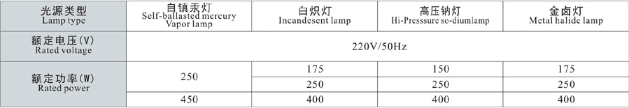 3、可配裝汞燈、高壓鈉燈、金鹵燈。